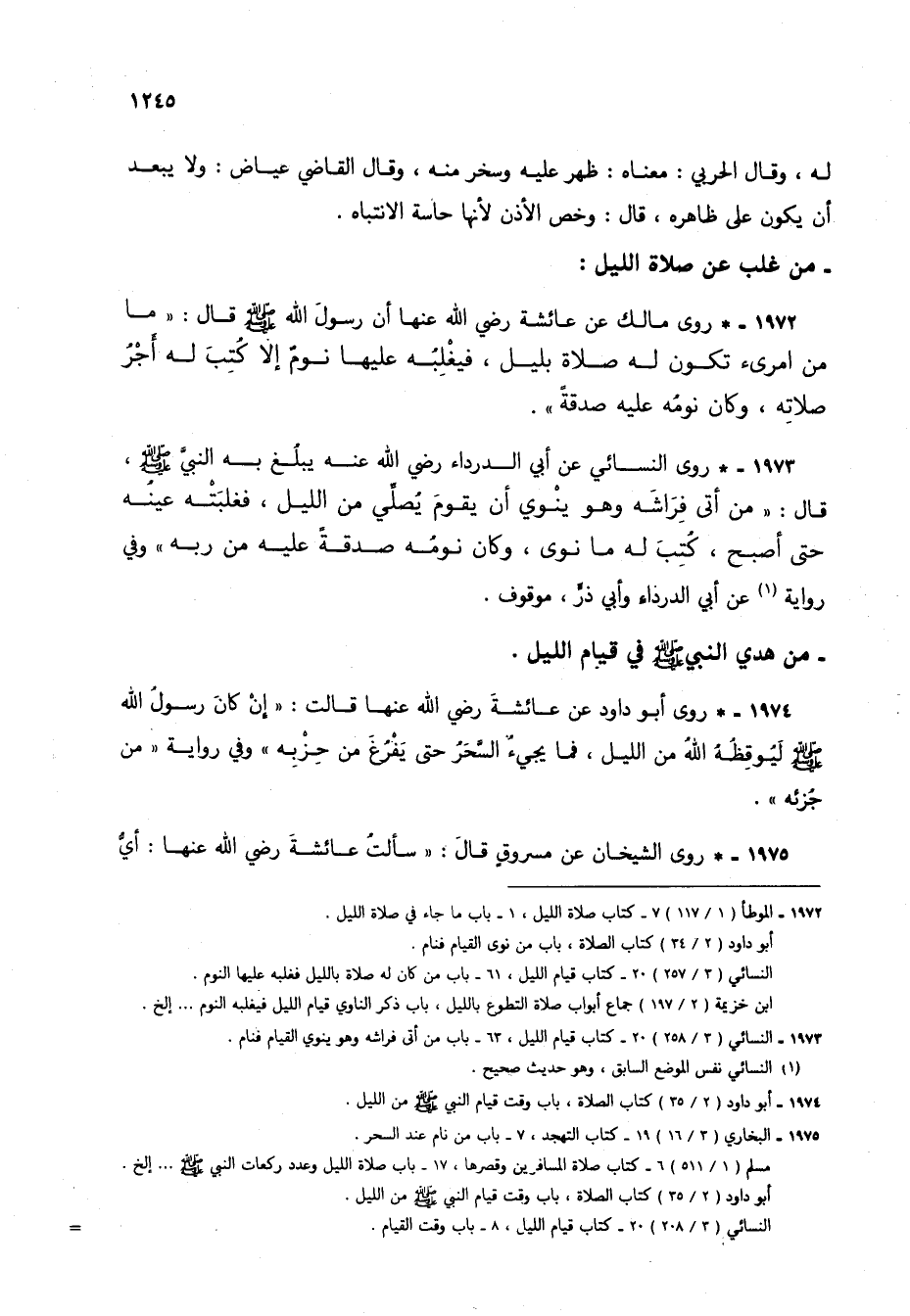 1973 - * روى النسائي عن أبي الدرداء رضي الله عنه يبلغ به النبي صلى الله عليه وسلم، قال: "من أتى فراشه وهو ينوي أن يقوم يصلي من الليل، فغلبته عينه حتى أصبح، كتب له ما نوى، وكان نومه صدقة عليه من ربه" وفي رواية (3) عن أبي الدرداء وأبي ذر، موقوف.