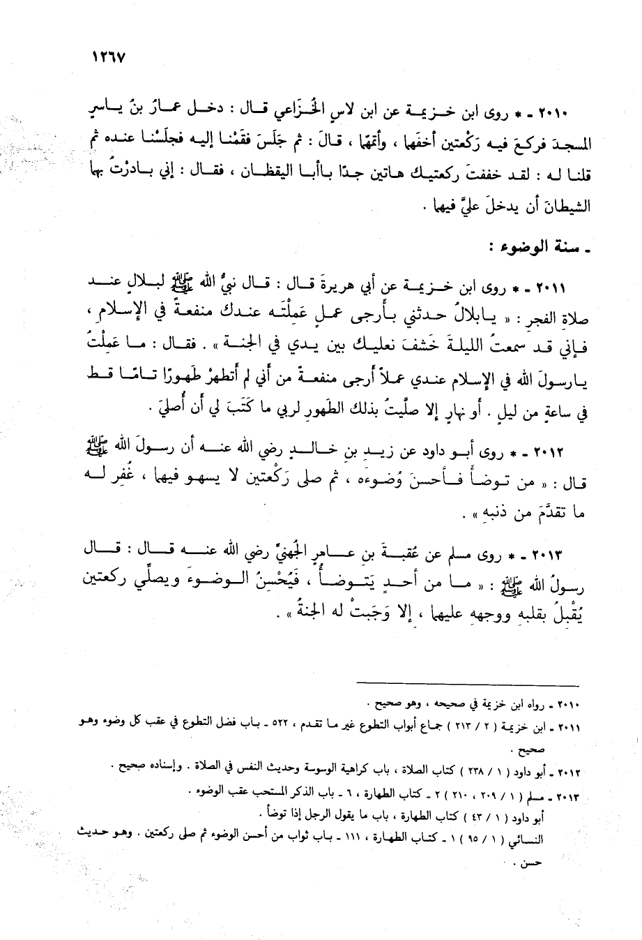 2012 - * روى أبو داود عن زيد بن خالد رضي الله عنه أن رسول الله صلى الله عليه وسلم قال: "من توضأ فأحسن وضوءه، ثم صلى ركعتين لا يسهو فيهما، غفر له ما تقدم من ذنبه".