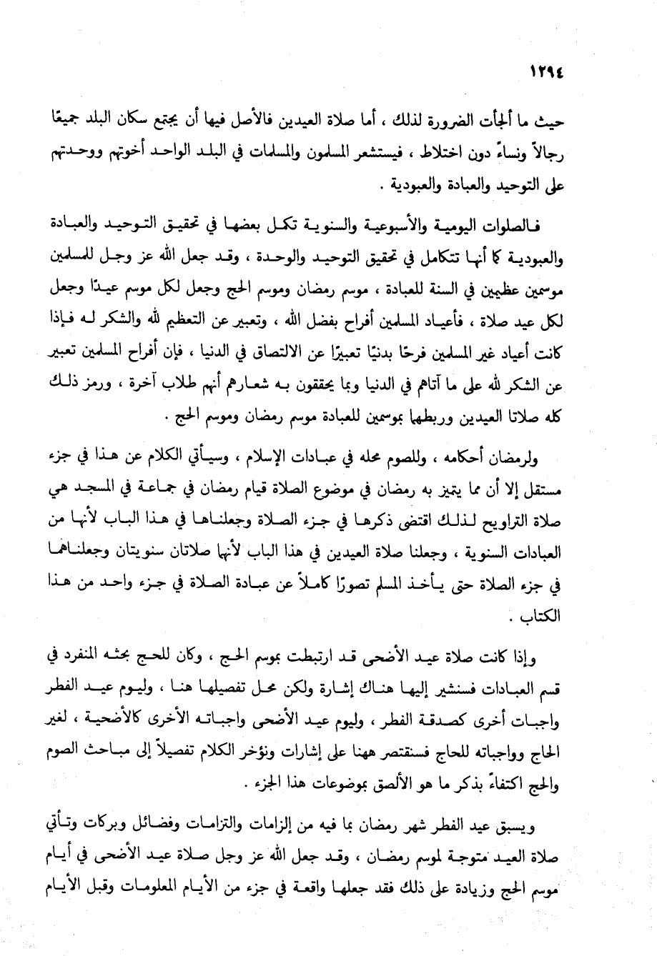 وإذا كانت صلاة عيد الأضحى قد ارتبطت بموسم الحج، وكان للحج بحثه المنفرد في قسم العبادات فسنشير إليها هناك إشارة ولكن محل تفصيلها هنا، وليوم عيد الفطر واجبات أخرى كصدقة الفطر، وليوم عيد الأضحى واجباته الأخرى كالأضحية، لغير الحاج وواجباته للحاج فسنقتصر ههنا على إشارات ونؤخر الكلام تفصيلاً إلى مباحث الصوم والحج اكتفاء بذكر ما هو الألصق بموضوعات هذا الجزء.