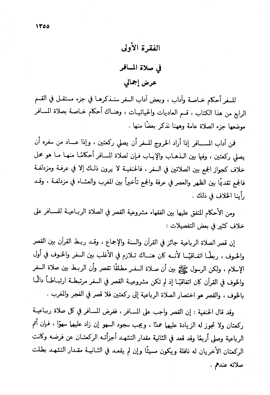 ومن الأحكام المتفق عليها بين الفقهاء مشروعية القصر في الصلاة الرباعية للمسافر على خلاف كثير في بعض التفصيلات: