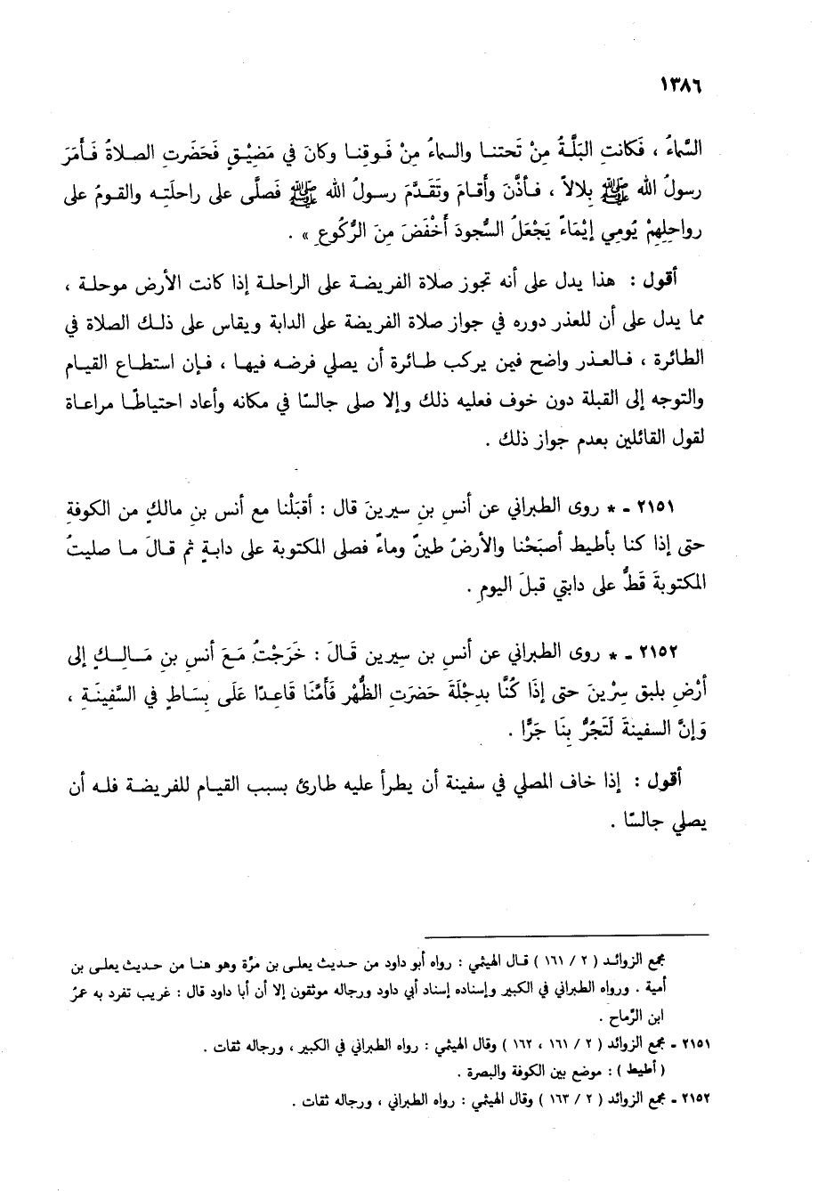2151 - * روى الطبراني عن أنس بن سيرين قال: أقبلنا مع أنس بن مالك من الكوفة حتى إذا كنا بأطيط أصبحنا والأرض طين وماء فصلى المكتوبة على دابة ثم قال ما صليت المكتوبة قط على دابتي قبل اليوم.