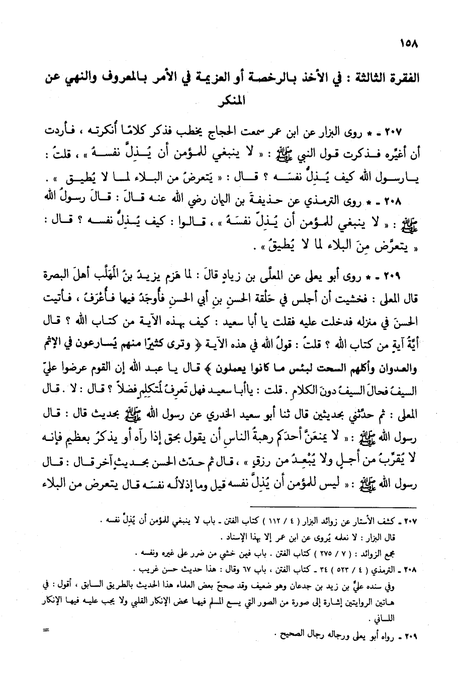 207 - كشف الأستار عن زوائد البزار (4/ 112) كتاب الفتن - باب لا ينبغي للمؤمن أن يُذلَّ نفسه.