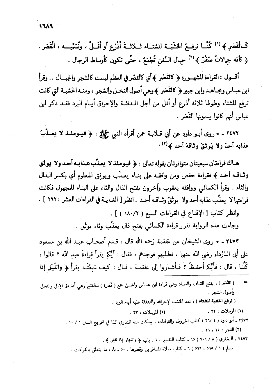 2472 - * روى أبو داود عن أبي قلابة عمن أقرأه النبي صلى الله عليه وسلم: {فَيَوْمَئِذٍ لَا يُعَذِّبُ عَذَابَهُ أَحَدٌ وَلَا يُوثِقُ وَثَاقَهُ أَحَدٌ} (3).