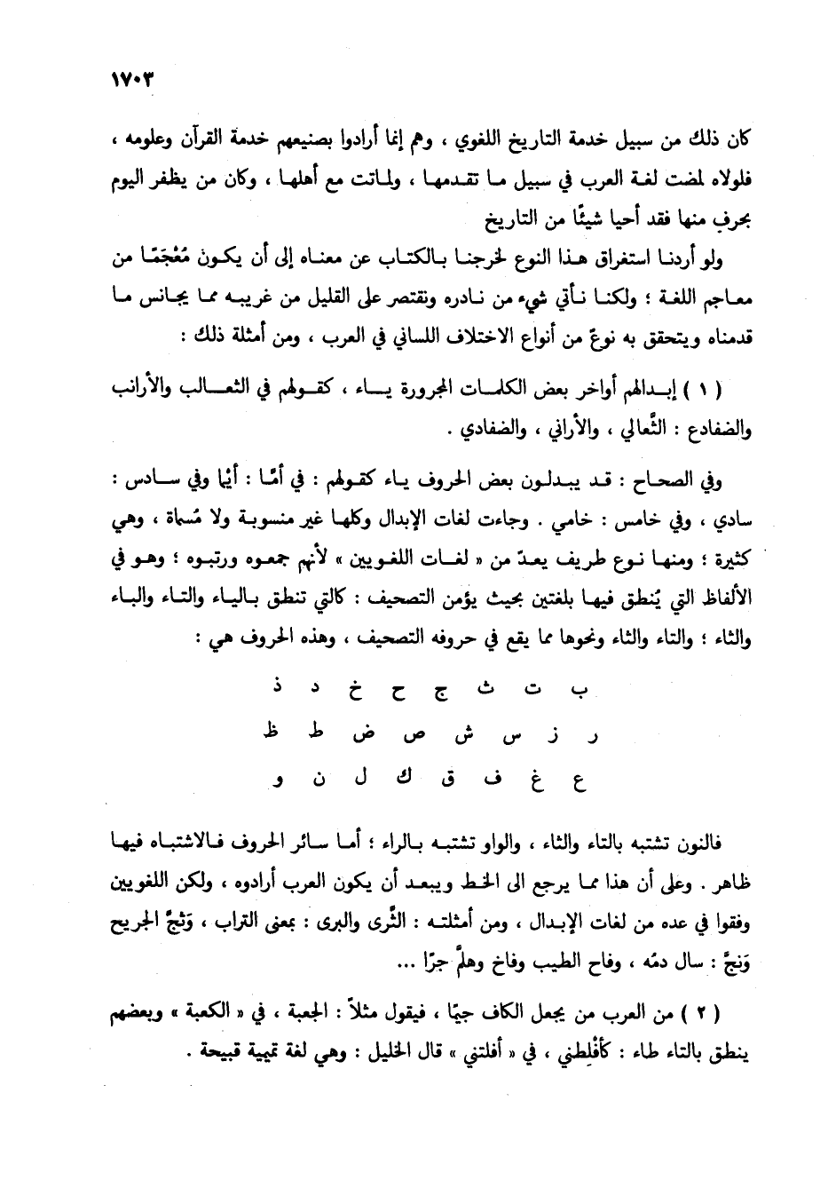 وفالنون تشتبه بالتاء والثاء، والواو تشتبه بالراء؛ أما سائر الحروف فالاشتباه فيها ظاهر. وعلى أن هذا مما يرجع إلى الخط ويبعد أن يكون العرب أرادوه، ولكن اللغويين وفقوا في عده من لغات الإبدال، ومن أمثلته: الثَّرى والبرى: بمعنى التراب، وثجَّ الجريح ونجَّ: سال دمُه، وفاح الطيب وفاخ وهلمَّ جراً ...