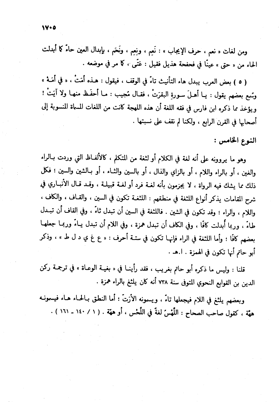 قلنا: وليس ما ذكره أبو حاتم بغريب، فقد رأينا في "بغية الوعاة" في ترجمة ركن الدين بن القوابع النحوي المتوفى سنة 738 أنه كان يلثغ بالراء همزة.