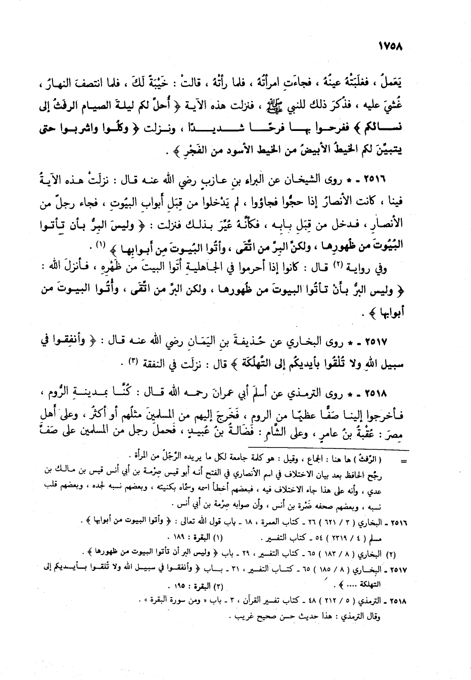 (2) البخاري (8/ 183) 65 - كتاب التفسير، 29 - باب (وليس البر أن تأتوا البيوت من ظهورها).