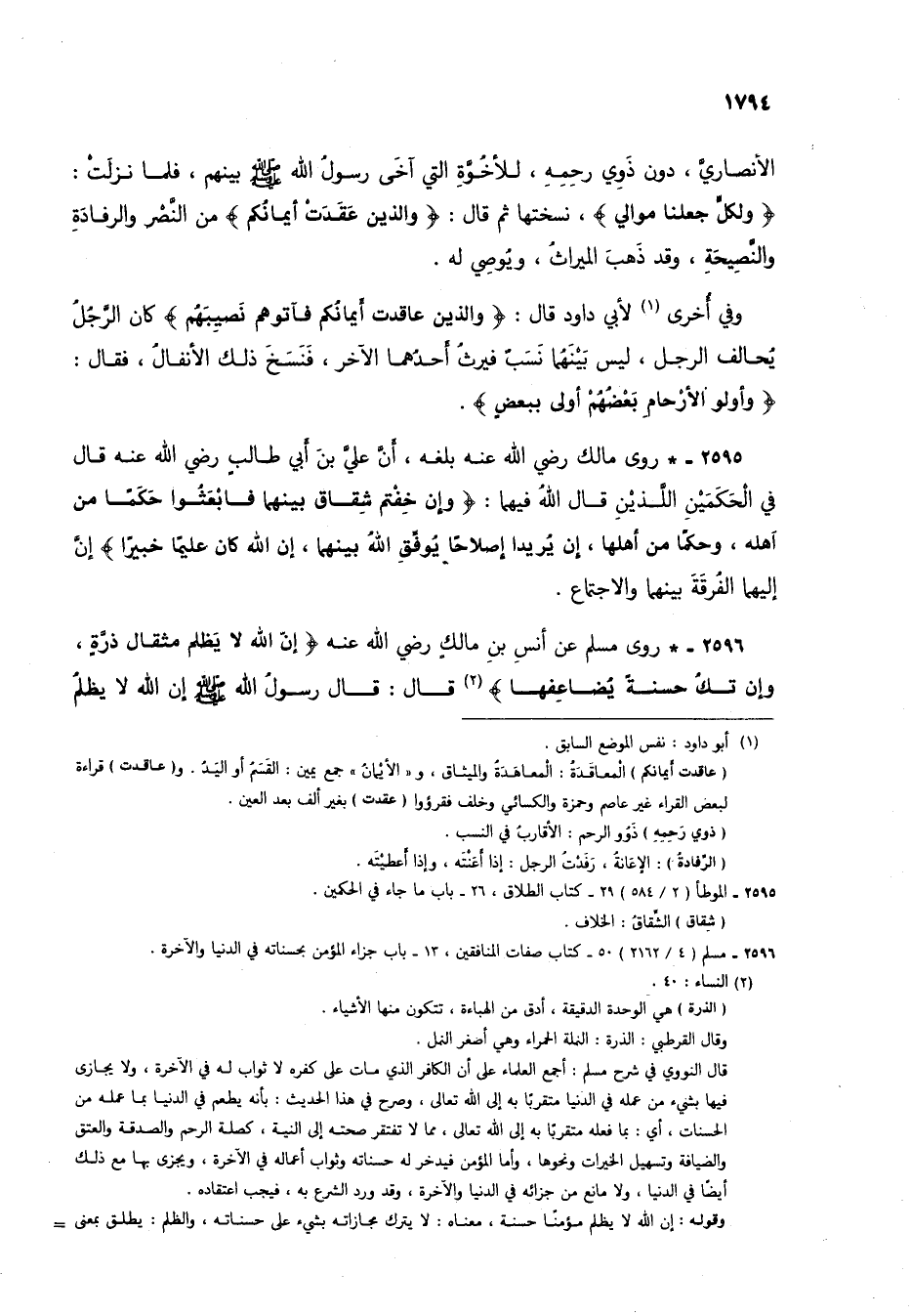 2596 - * روى مسلم عن أنس بن مالك رضي الله عنه {إِنَّ اللَّهَ لَا يَظْلِمُ مِثْقَالَ ذَرَّةٍ وَإِنْ تَكُ حَسَنَةً يُضَاعِفْهَا} (2) قال: قال رسول الله صلى الله عليه وسلم إن الله لا يظلمُ