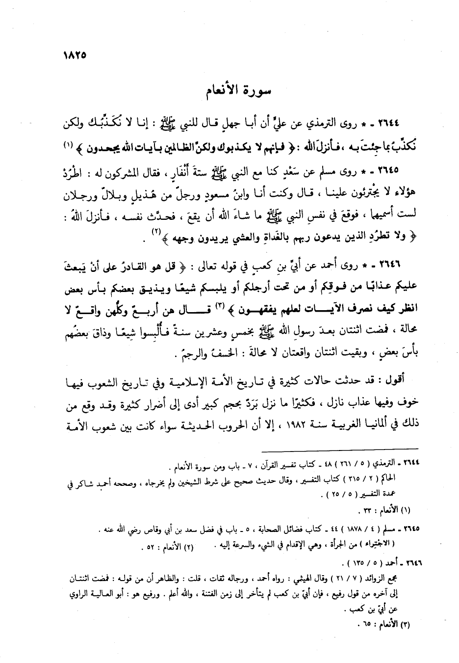 2644 - الترمذي (5/ 261) 48 - كتاب تفسير القرآن، 7 - باب ومن سورة الأنعام.