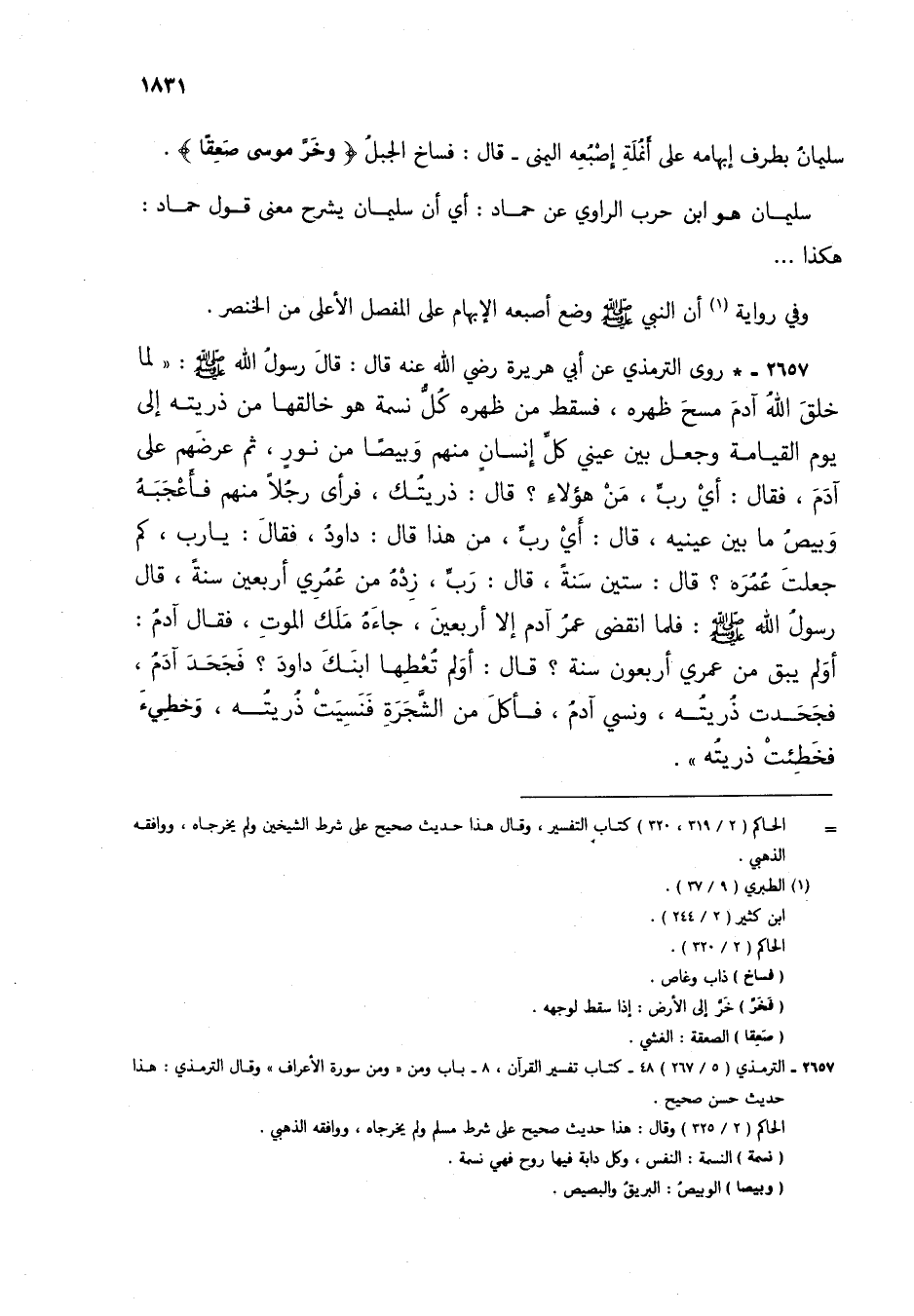 2657 - الترمذي (5/ 267) 48 - كتاب تفسير القرآن، 8 - باب ومن "ومن سورة الأعراف" وقال الترمذي هذا: حديث حسن صحيح.