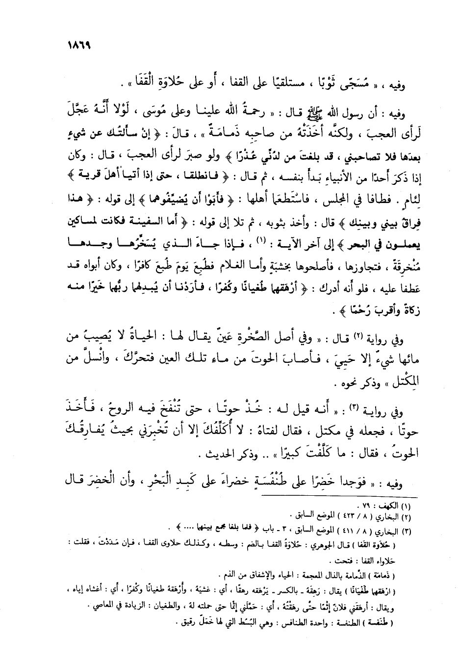 (3) البخاري (8/ 411) الموضع السابق، 3 - باب (فلما بلغا مجمع بينهما ...).