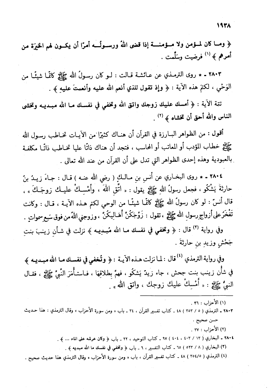 (3) البخاري (8/ 523) 65 - كتاب التفسير، 6 - باب (وتخفي في نفسك ما الله مبديه).