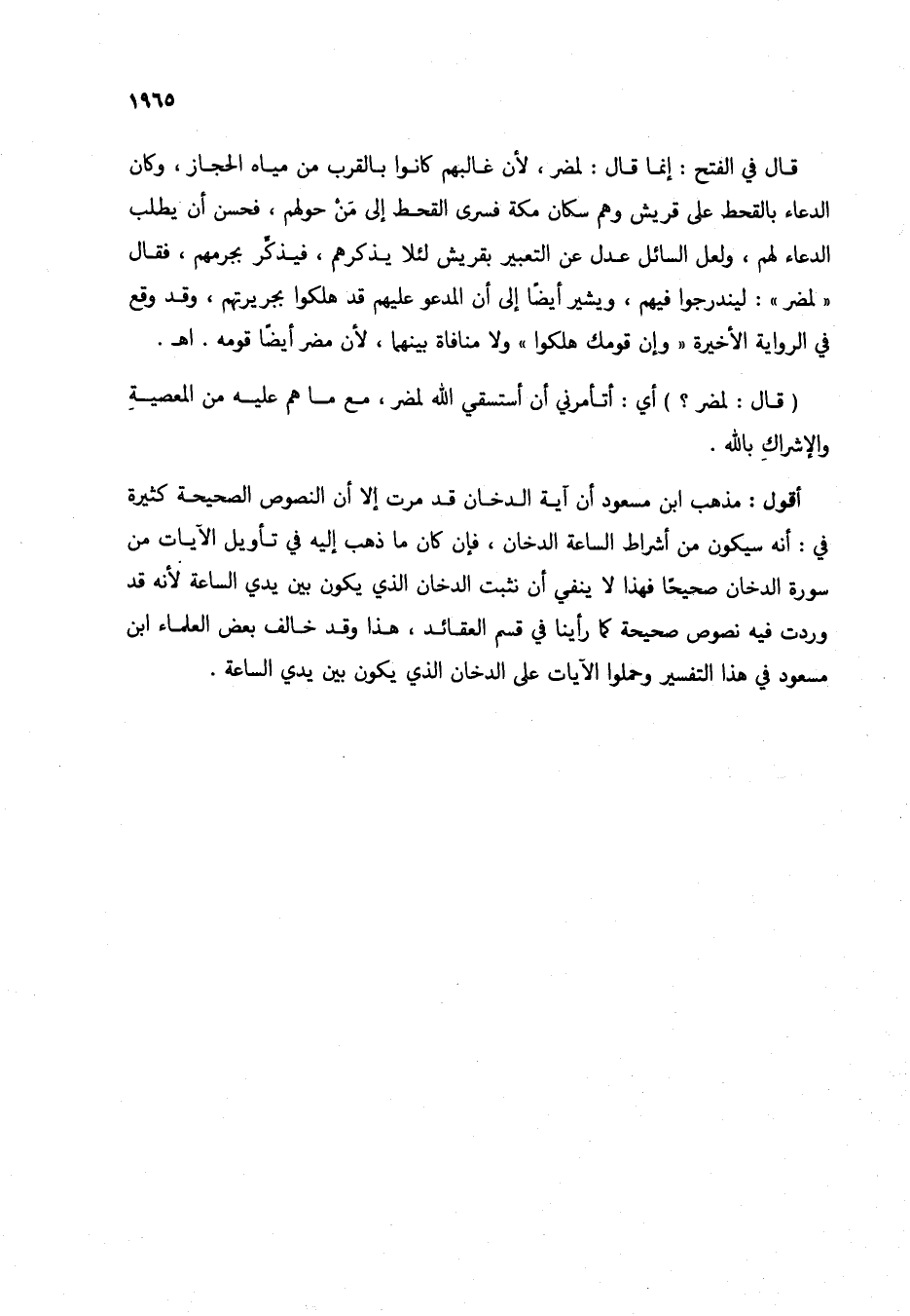 أقول: مذهب ابن مسعود أن آية الدخان قد مرت إلا أن النصوص الصحيحة كثيرة في: أنه سيكون من أشراط الساعة الدخان، فإن كان ما ذهب إليه في تأويل الآيات من سورة الدخان صحيحاً فهذا لا ينفي أن نثبت الدخان الذي يكون بين يدي الساعة لأنه قد وردت فيه نصوص صحيحة كما رأينا في قسم العقائد، هذا وقد خالف بعض العلماء ابن مسعود في هذا التفسير وحملوا الآيات على الدخان الذي يكون بين يدي الساعة.