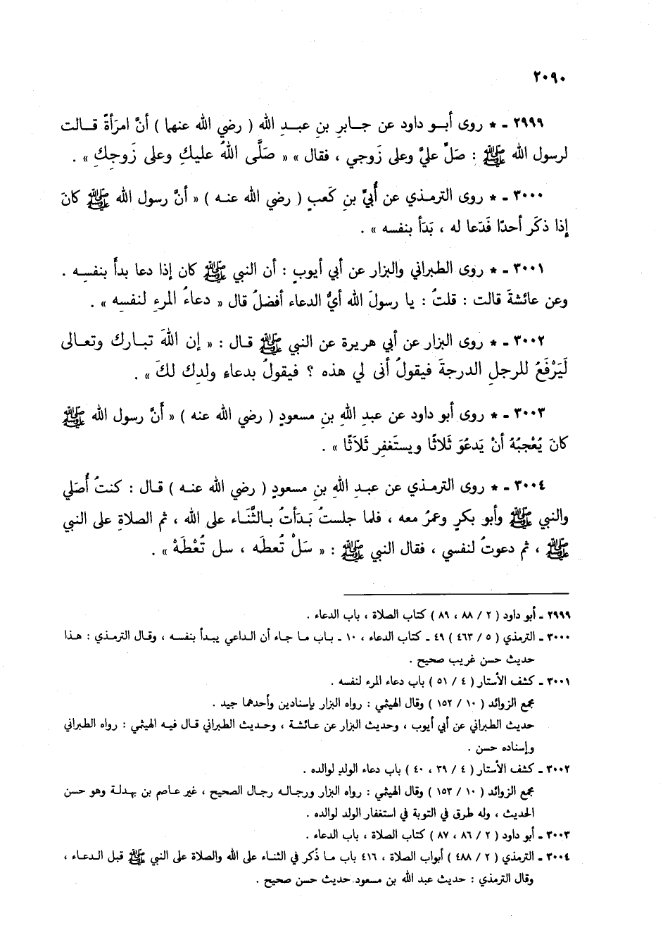 3000 - * روى الترمذي عن أبي بن كعب (رضي الله عنه) "أن رسول الله صلى الله عليه وسلم كان إذا ذكر أحداً فدعاً له، بدأ بنفسه".