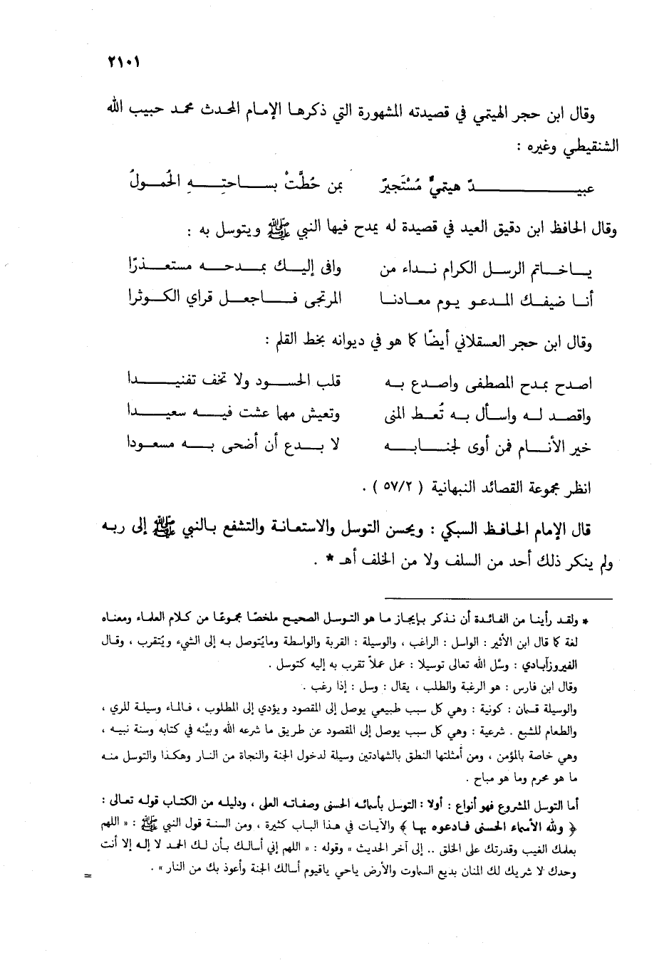 وقال ابن حجر الهيتمي في قصيدته المشهورة التي ذكرها الإمام المحدث محمد حبيب الله الشنقيطي وغيره: