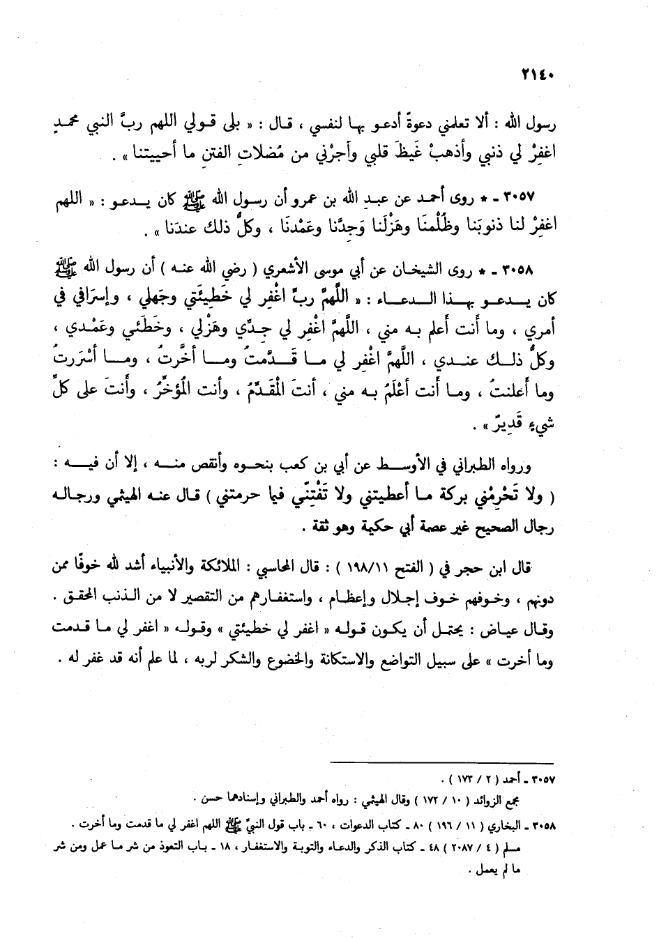 3057 - *روى أحمد عن عبد الله بن عمرو أن رسول الله صلى الله عليه وسلم كان يدعو: "اللهم اغفر لنا ذنوبنا وظلمنا وهزلنا وجدنا وعمدنا، وكل ذلك عندنا".