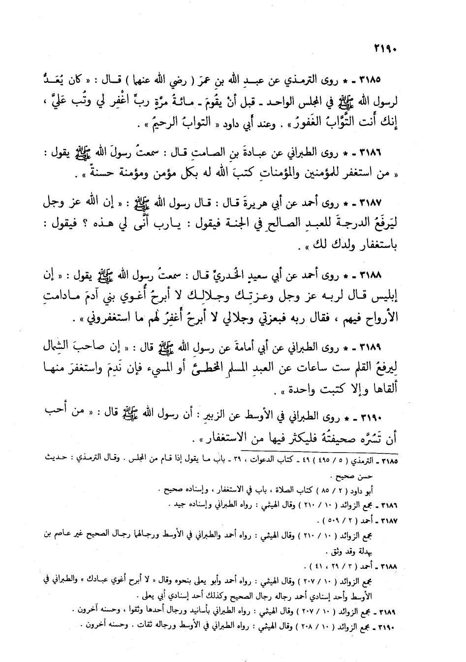 3190 - * روى الطبراني في الأوسط عن الزبير: أن رسول الله صلى الله عليه وسلم قال: "من أحب أن تسره صحيفته فليكثر فيها من الاستغفار".