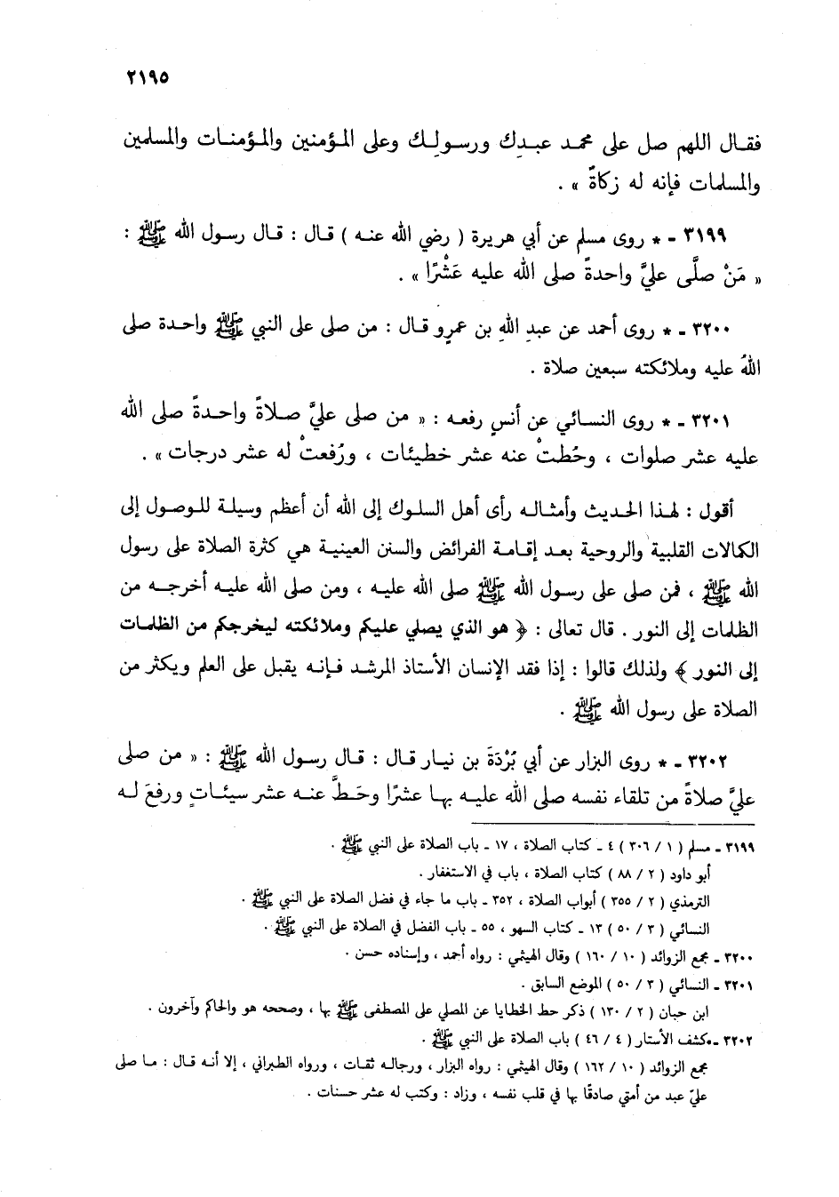 3200 - * روى أحمد عن عبد الله بن عمرو قال: من صلى على النبي صلى الله عليه وسلم واحدة صلى الله عليه وملائكته سبعين صلاة.