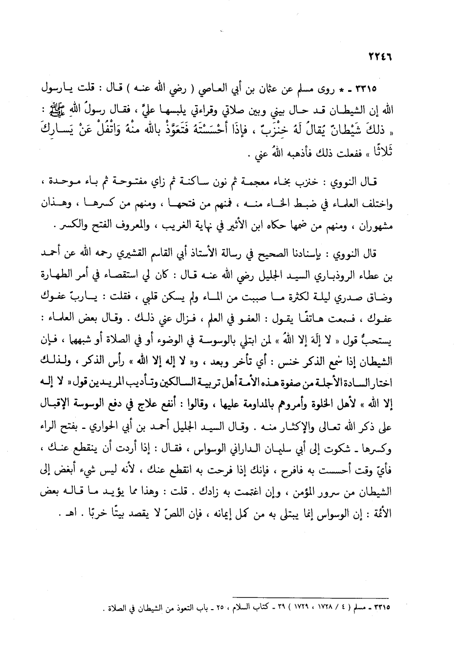 3315 - مسلم (4/ 1728، 1729) 39 - كتاب السلام، 25 - باب التعوذ من الشيطان في الصلاة.