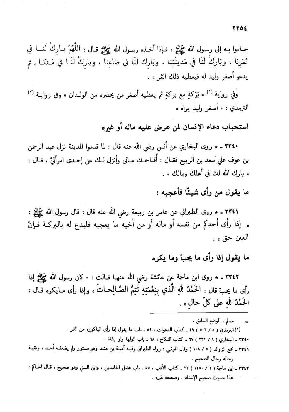 3341 - * روى الطبراني عن عامر بن ربيعة رضي الله عنه قال: قال رسول الله صلى الله عليه وسلم: "إذا رأى أحدكم من نفسه أو ماله أو من أخيه ما يعجبه فليدع له بالبركة فإن العين حق".