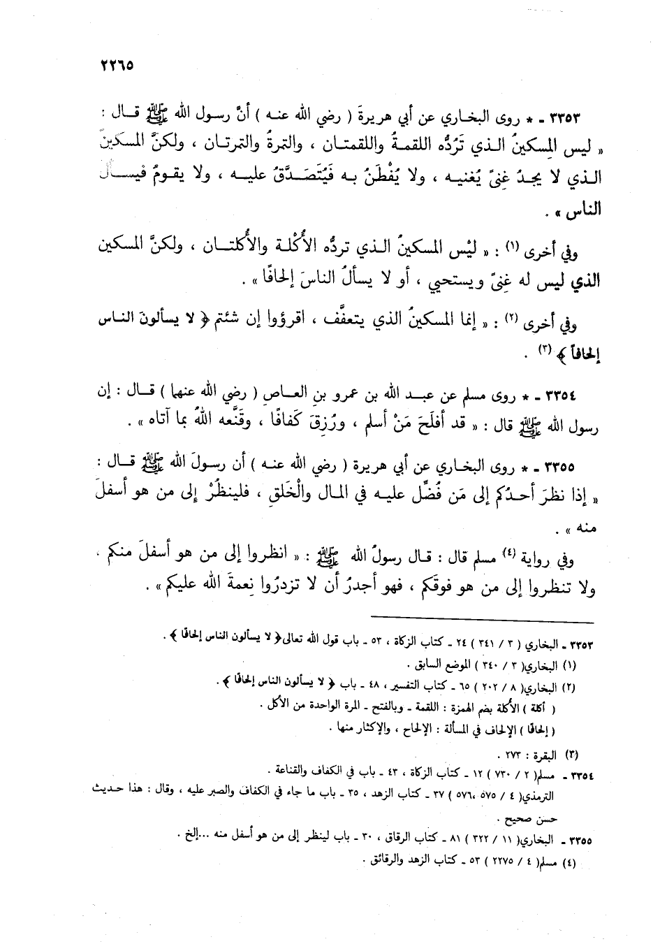 (2) البخاري (8/ 202) 65 - كتاب التفسير، 48 - باب (لا يسألون الناس إلحافاً).