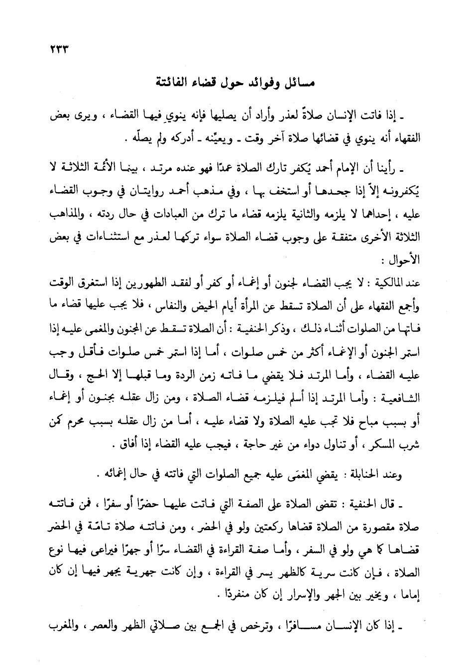 مسائل وفوائد حول قضاء الفائتة