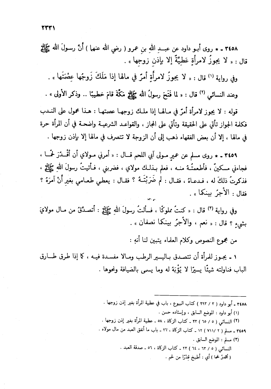 (2) النسائي (5/ 65) 23 - كتاب الزكاة، 58 - عطية المرأة بغير إذن زوجها.