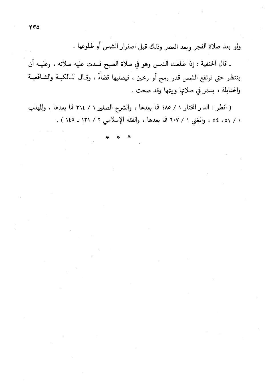 - قال الحنفية: إذا طلعت الشمس وهو في صلاة الصبح فسدت عليه صلاته، وعليه أن ينتظر حتى ترتفع الشمس قدر رمح أو رمحين، فيصليها قضاءً، وقال المالكية والشافعية والحنابلة، يستمر في صلاتها ويتمها وقد صحت.