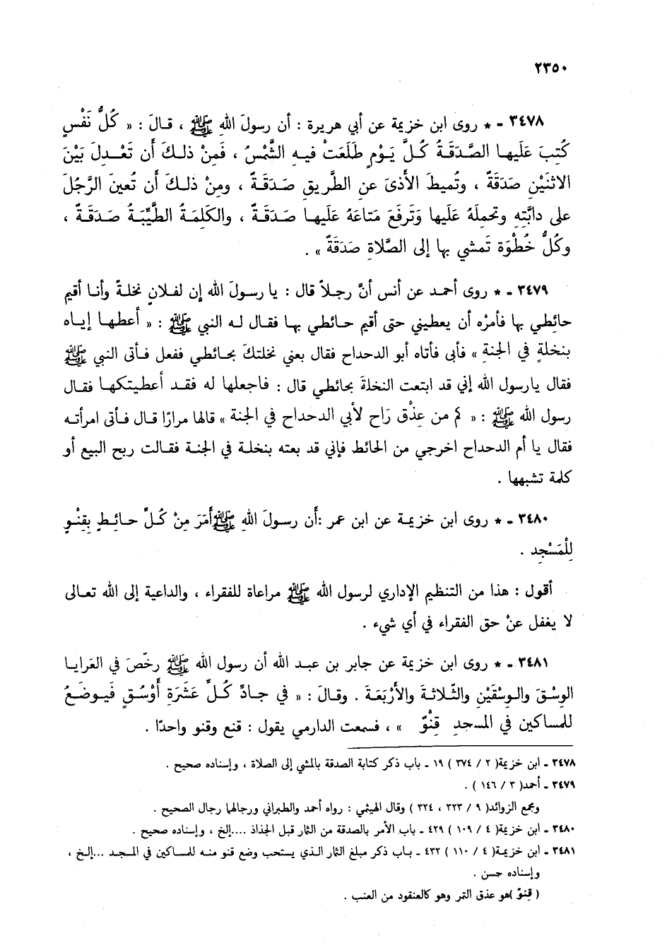 3480 - *روى ابن خزيمة عن ابن عمر: أن رسول الله صلى الله عليه وسلم أمر من كل حائط بقنو للمسجد.
