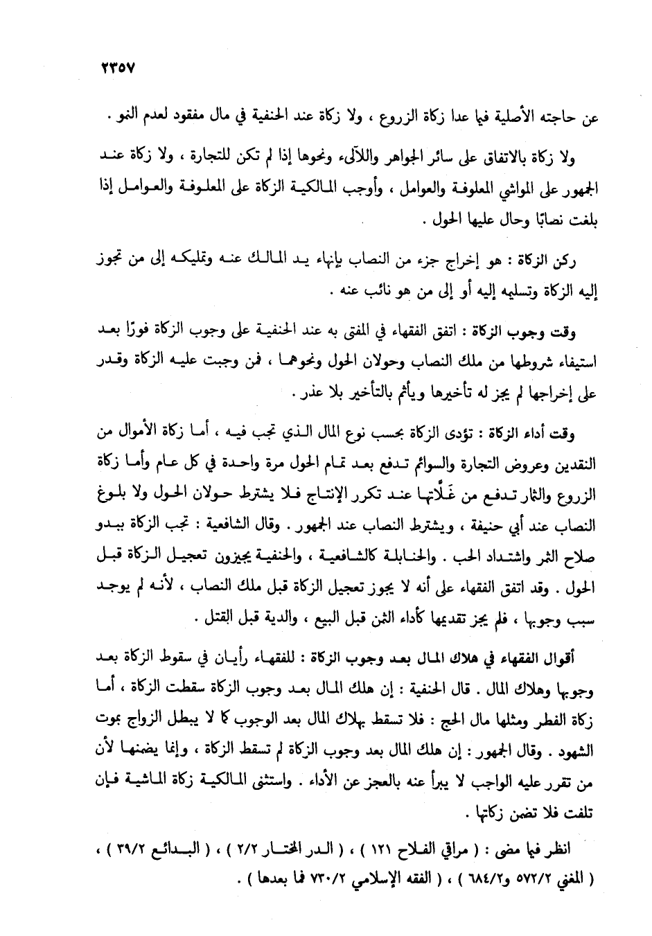 انظر فيما مضى: (مراقي الفلاح 121)، (الدر المختار 2/ 2)، (البدائع 2/ 39)، (المغني 2/ 572 و 2/ 684)، (الفقه الإسلامي 2/ 730 فما بعدها).