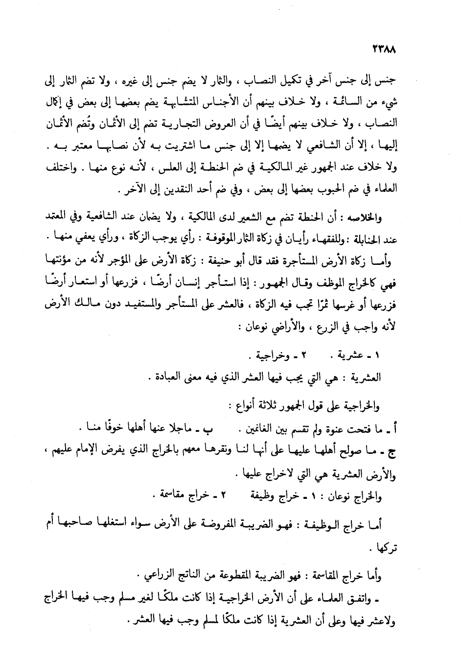 ج- ما صولح أهلها عليها على أنها لنا ونقرها معهم بالخراج الذي يفرض الإمام عليهم، والأرض العشرية هي التي لا خراج عليها.