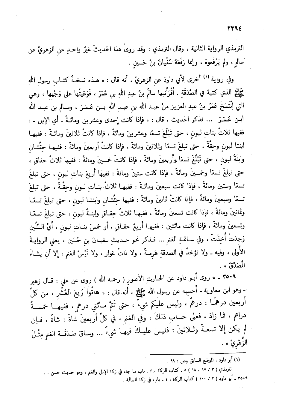 3509 - أبو داود (2/ 100) كتاب الزكاة، 4 - باب في زكاة السائمة.