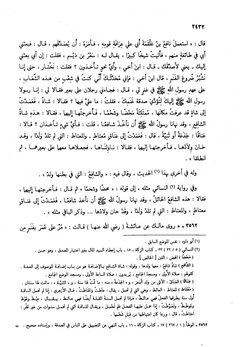 3562 - * روى مالك عن عائشة (رضي الله عنها) قالت: "مر على عمر بغنم من