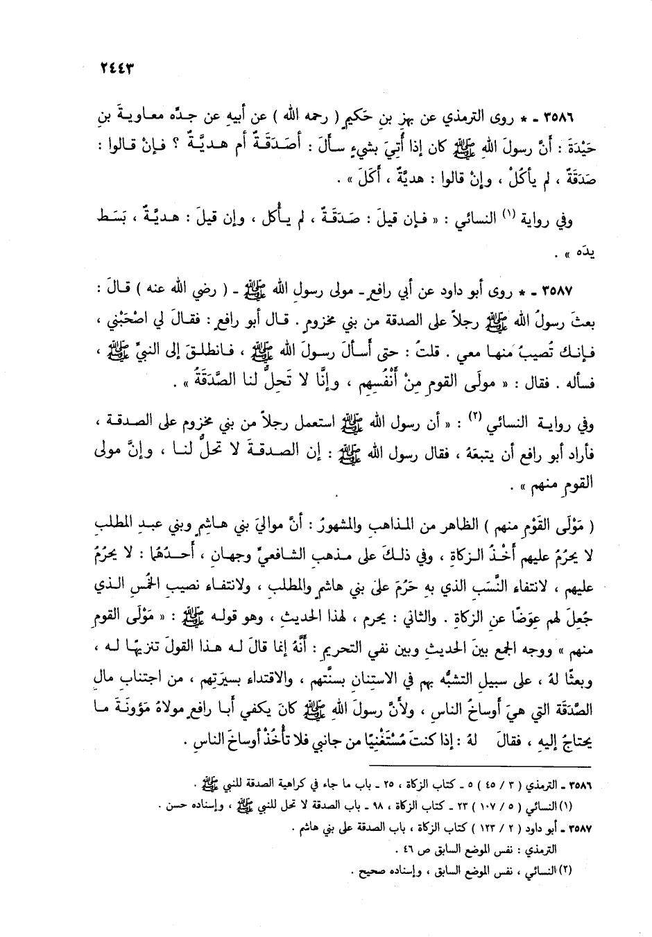 3587 - أبو داود (2/ 123) كتاب الزكاة، باب الصدقة على بني هاشم.