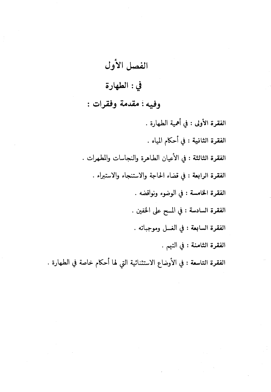 الفقرة الأولى: في أهمية الطهارة. الفقرة الثانية: في أحكام المياه.