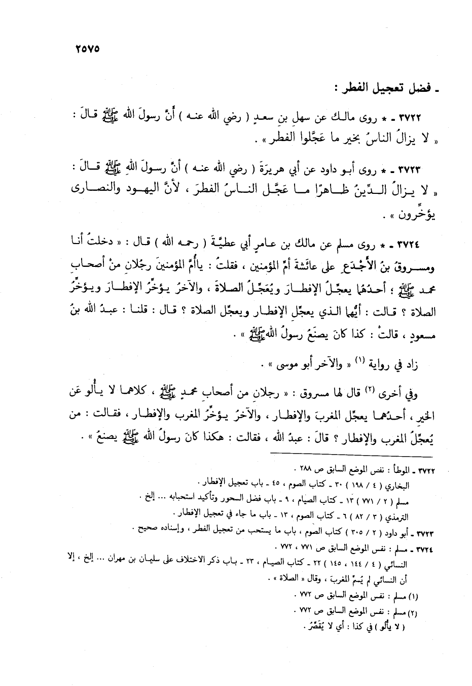 3722 - * روى مالك عن سهل بن سعد (رضي الله عنه) أن رسول الله صلى الله عليه وسلم قال: "لا يزال الناس بخير ما عجلوا الفطر".