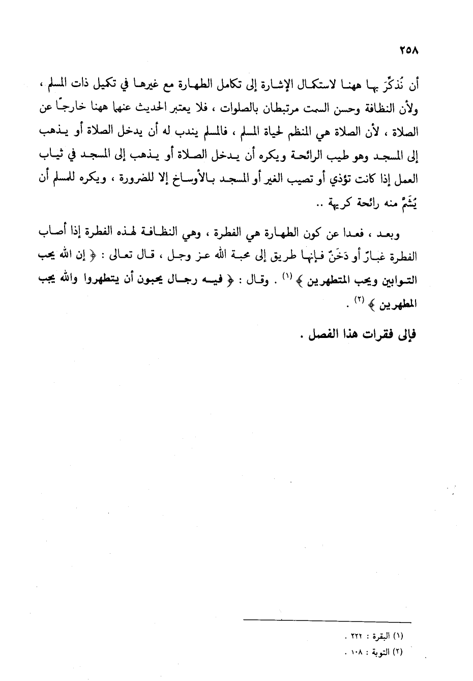 وبعد، فعدا عن كون الطهارة هي الفطرة، وهي النظافة لهذه الفطرة إذا أصاب الفطرة غبارٌ ودخنٌ فإنها طريق إلى محبة الله عز وجل، قال تعالى: {إِنَّ اللَّهَ يُحِبُّ التَّوَّابِينَ وَيُحِبُّ الْمُتَطَهِّرِينَ} (1). وقال: {فِيهِ رِجَالٌ يُحِبُّونَ أَنْ يَتَطَهَّرُوا وَاللَّهُ يُحِبُّ الْمُطَّهِّرِينَ} (2).