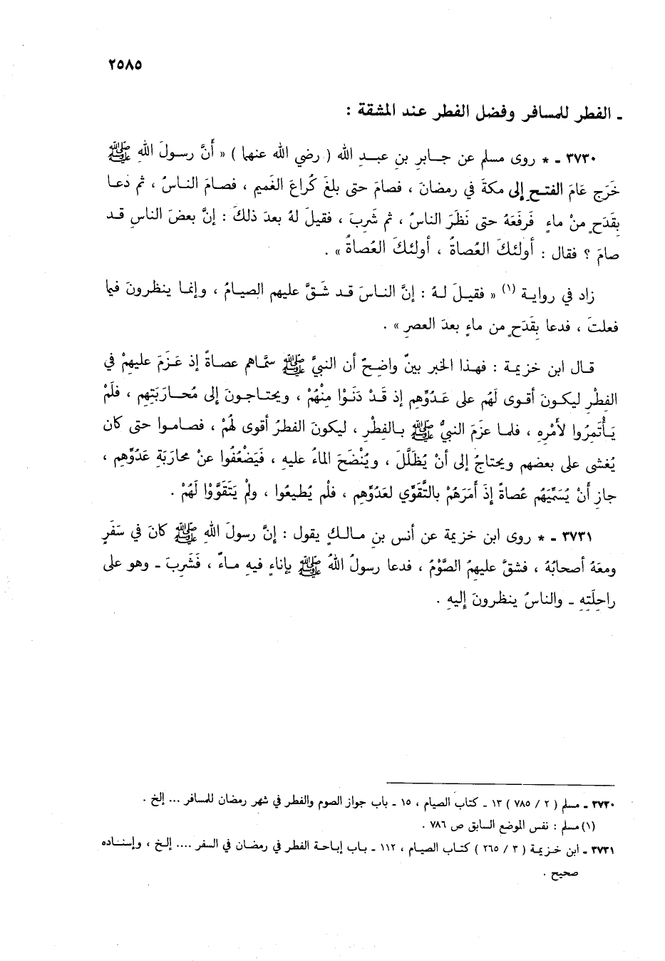 - الفطر للمسافر وفضل الفطر عند المشقة: