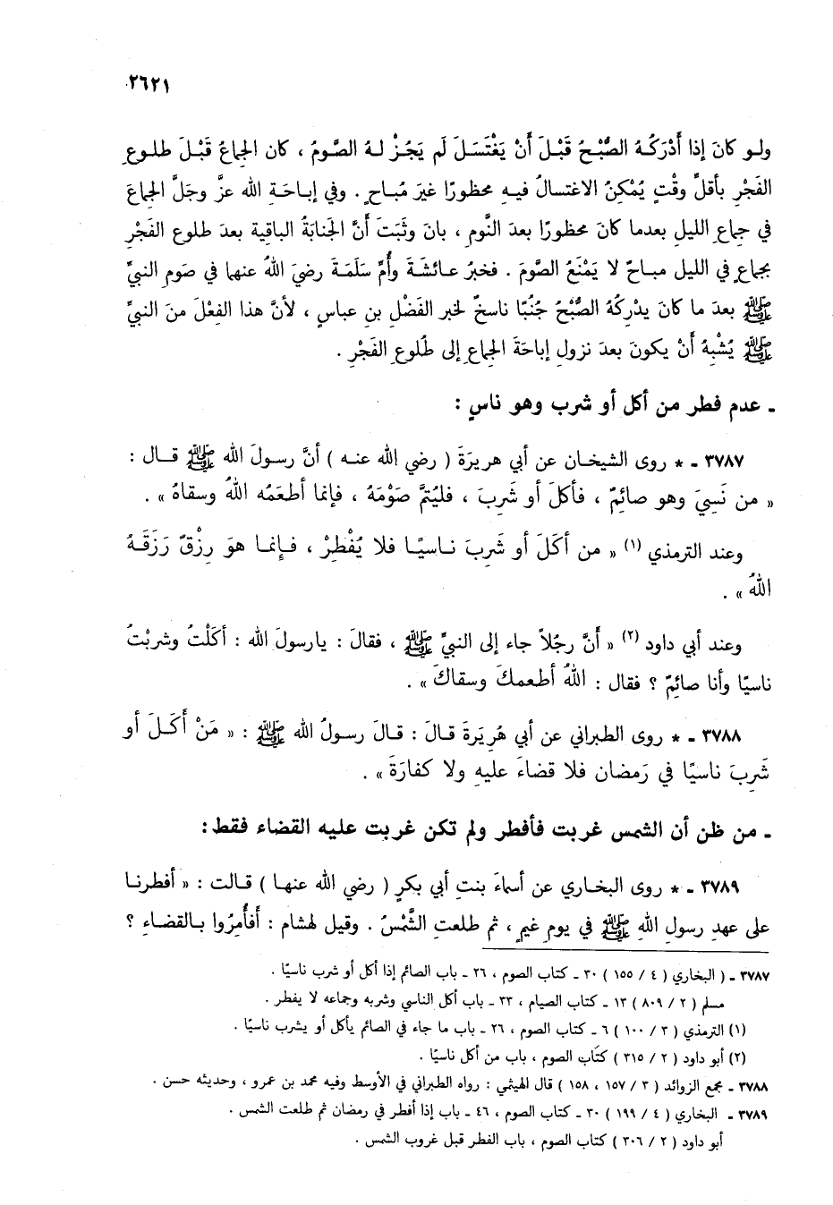 (2) أبو داود (2/ 315) كتاب الصوم، باب من أكل ناسياً.