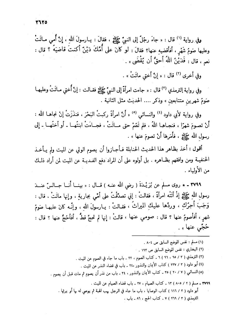 (4) أبو داود (3/ 237) كتاب الأيمان والنذور، 24 - باب يف قضاء النذر عن الميت.