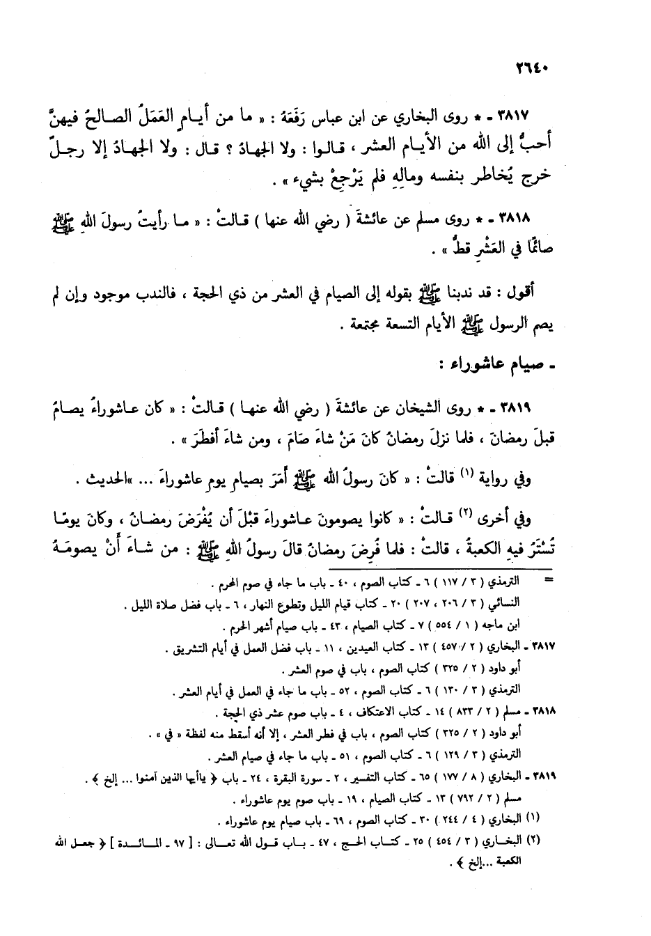 3818 - * روى مسلم عن عائشة (رضي الله عنها) قالت: "ما رأيت رسول الله صلى الله عليه وسلم صائماً في العشر قط".