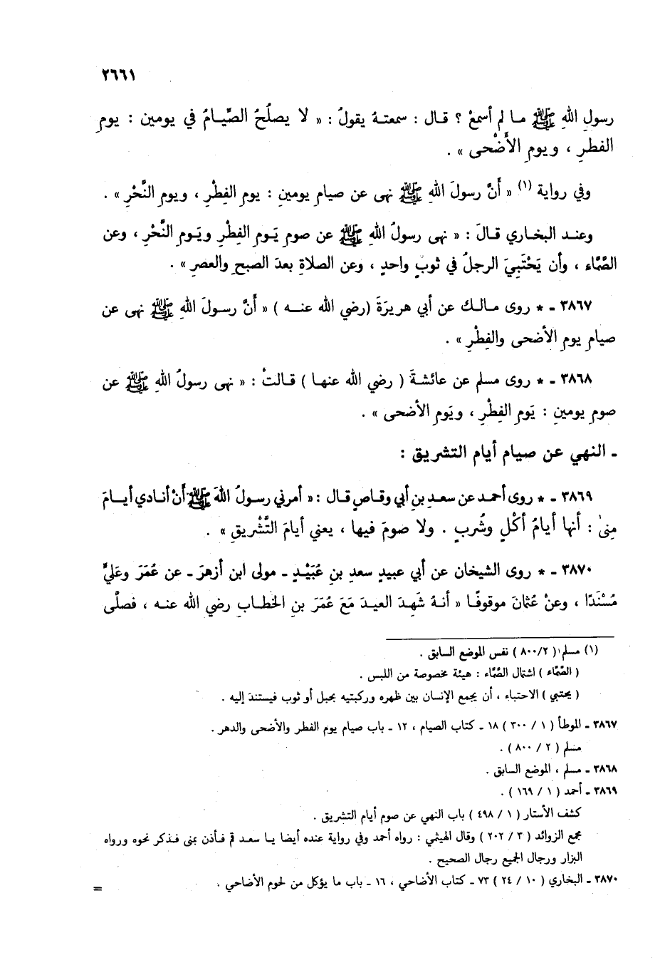 3868 - * روى مسلم عن عائشة (رضي الله عنها) قالت: "نهى رسول الله صلى الله عليه وسلم عن صوم يومين: يوم الفطر، ويوم الأضحى".
