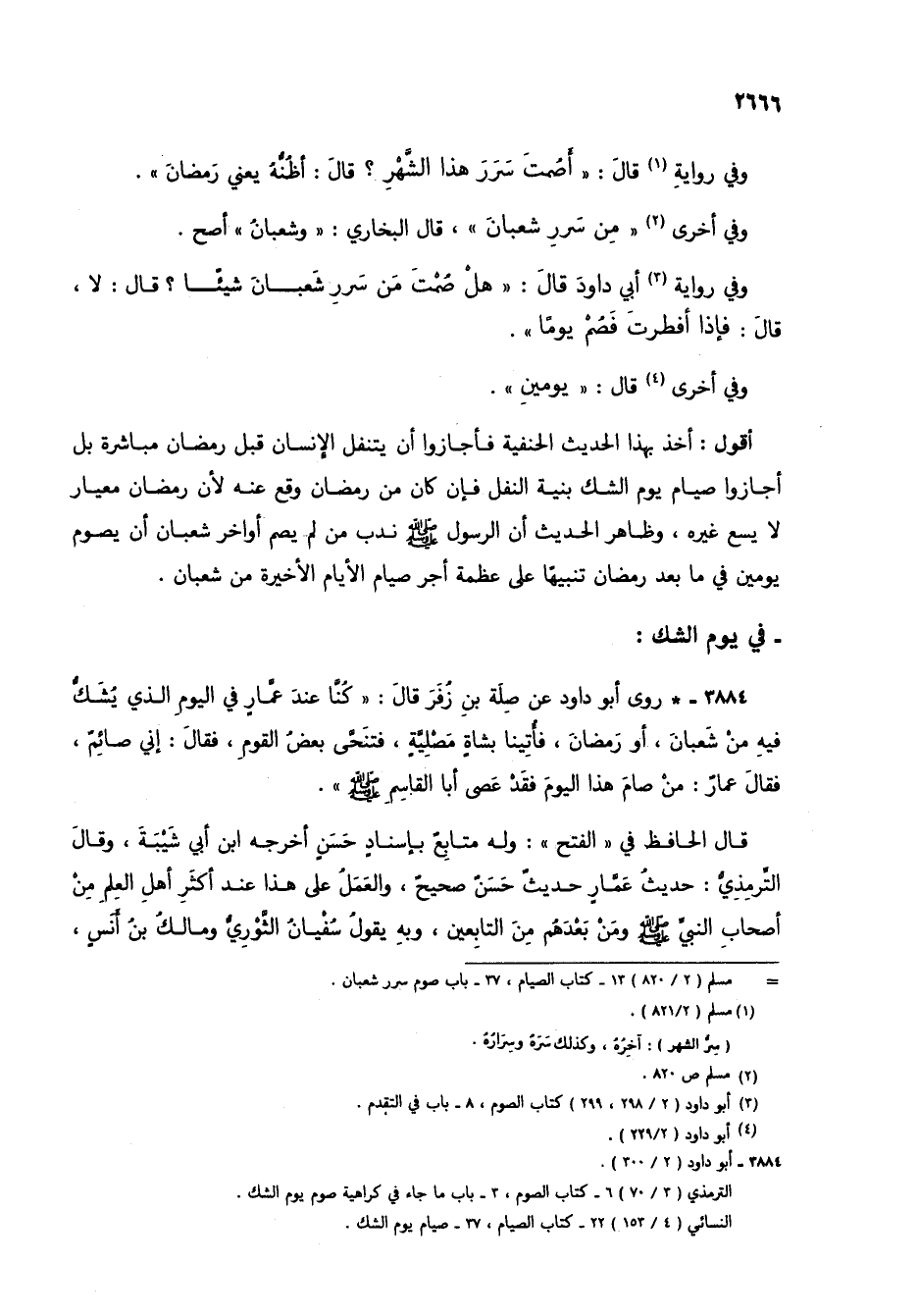 مسلم (2/ 820) 13 - كتاب الصيام، 37 - باب صوم سرر شعبان.
