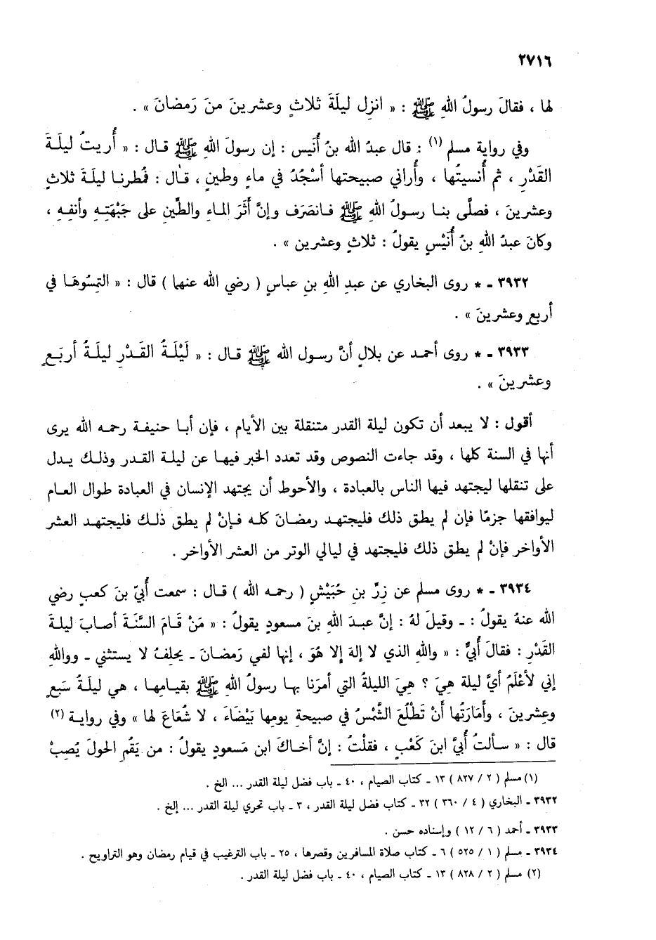 3932 - * روى البخاري عن عبد الله بن عباس (رضي الله عنهما) قال: "التمسوها في أربع وعشرين".