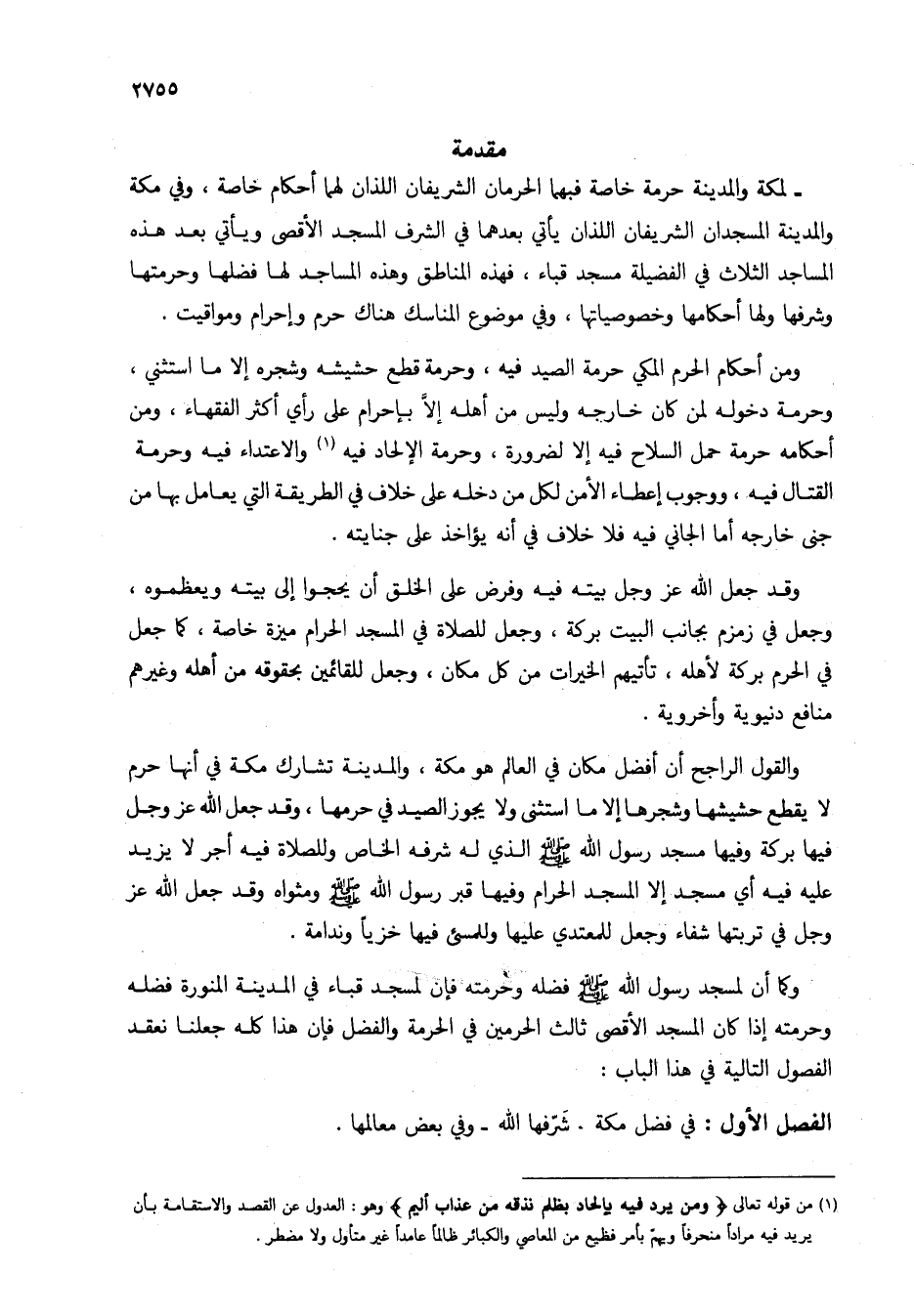 الفصل الأول: في فضل مكة. شرّفها الله- وفي بعض معالمها.