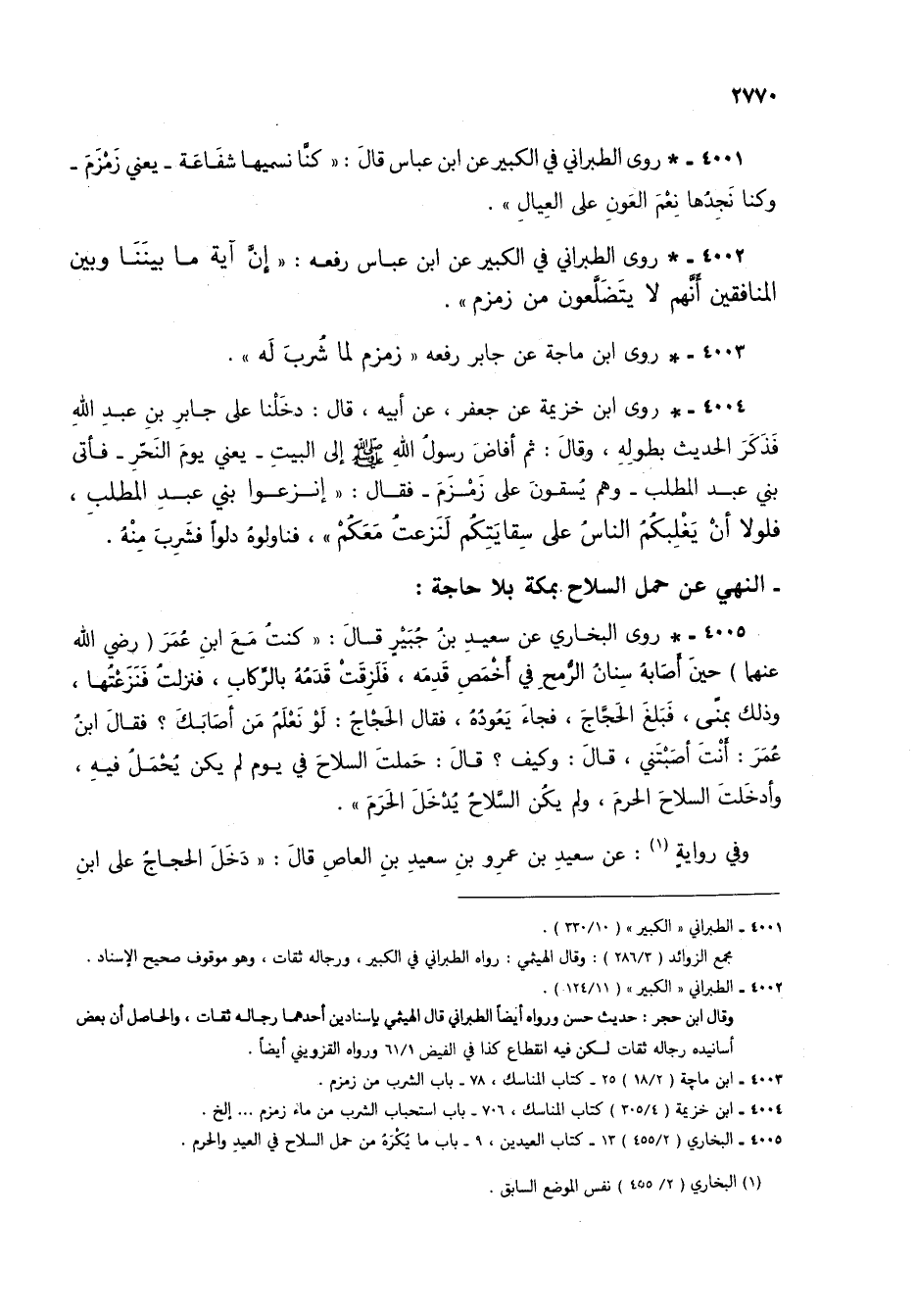 4001 - * روى الطبراني في الكبير عن ابن عباس قال: "كنا نسميها شفاعة- يعني زمزم- وكنا نجدها نعم العون على العيال".