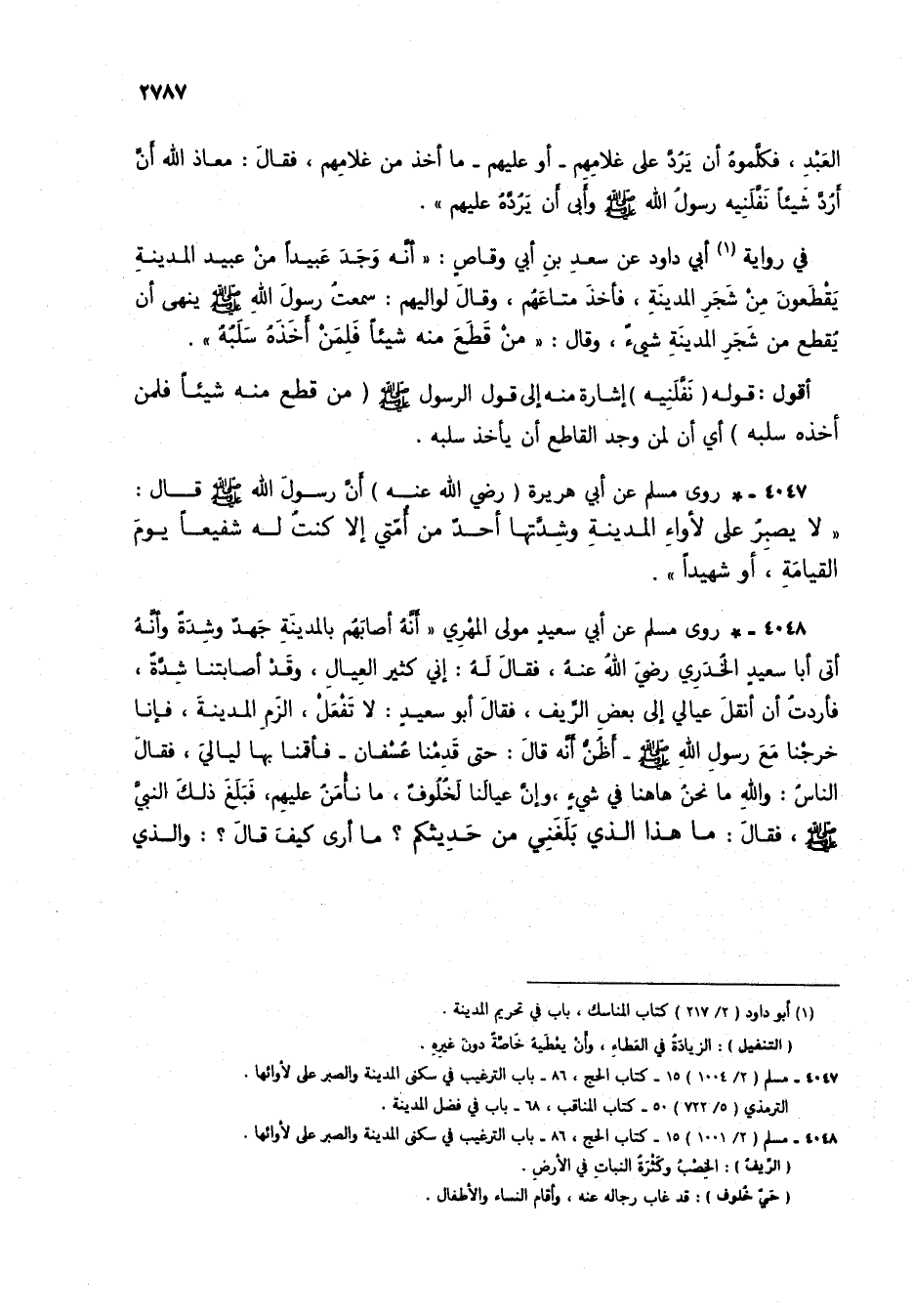 4047 - * روى مسلم عن أبي هريرة (رضي الله عنه) أن رسول الله صلى الله عليه وسلم قال: "لا يصبر على لأواء المدينة وشدتها أحد من أمتي إلا كنت له شفيعاً يوم القيامة، أو شهيداً".