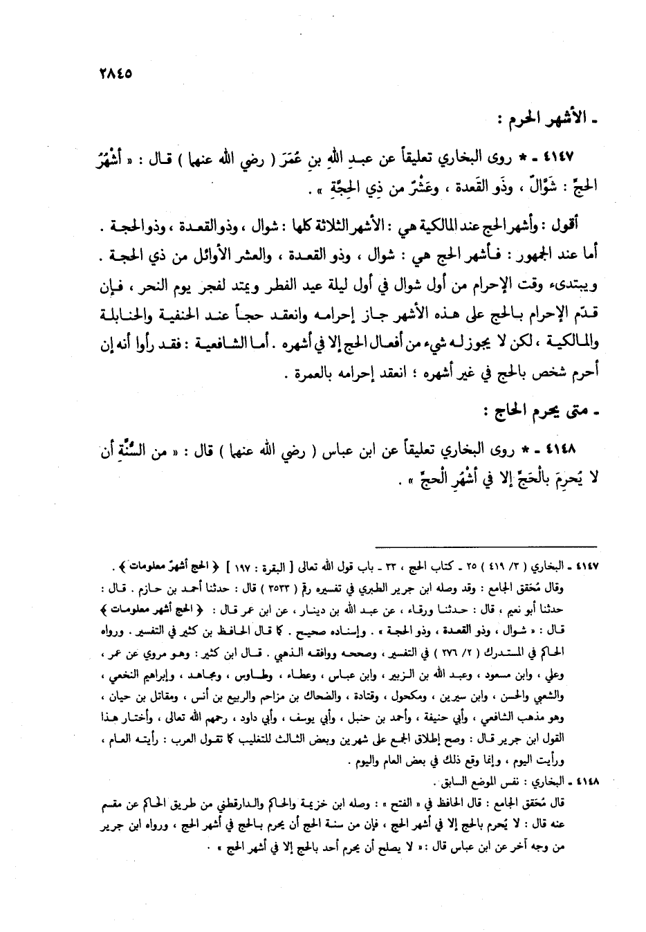 4147 - * روى البخاري تعليقاً عن عبد الله بن عمر (رضي الله عنهما) قال: "أشهر الحج: شوال، وذو القعدة، وعشر من ذي الحجة".