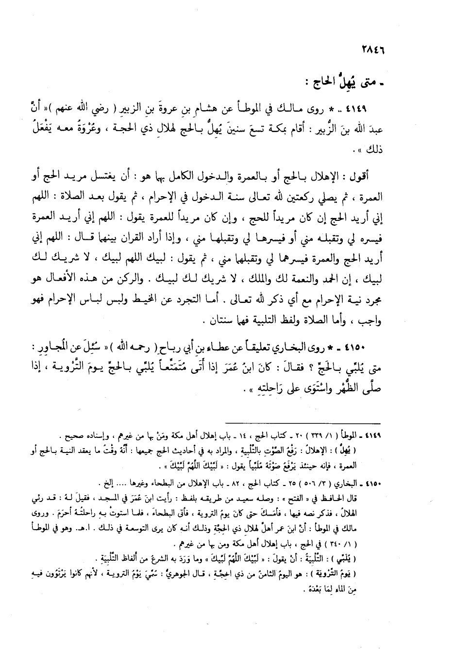 4150 - * روى البخاري تعليقاً عن عطاء بن أبي رباح (رحمه الله) "سئل عن المجاور: متى يلبي بالحج؟ فقال: كان ابن عمر إذا أتى متمتعاً يلبي بالحج يوم التروية، إذا صلى الظهر واستوى على راحلته".