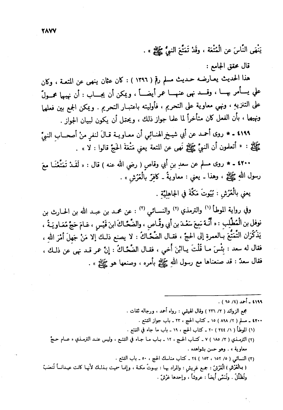 4199 - * روى أحمد عن أبي شيخ الهنائي أن معاوية قال لنفر من أصحاب النبي صلى الله عليه وسلم: "أتعلمون أن النبي صلى الله عليه وسلم نهى عن المتعة يعني متعة الحج قالوا: لا".