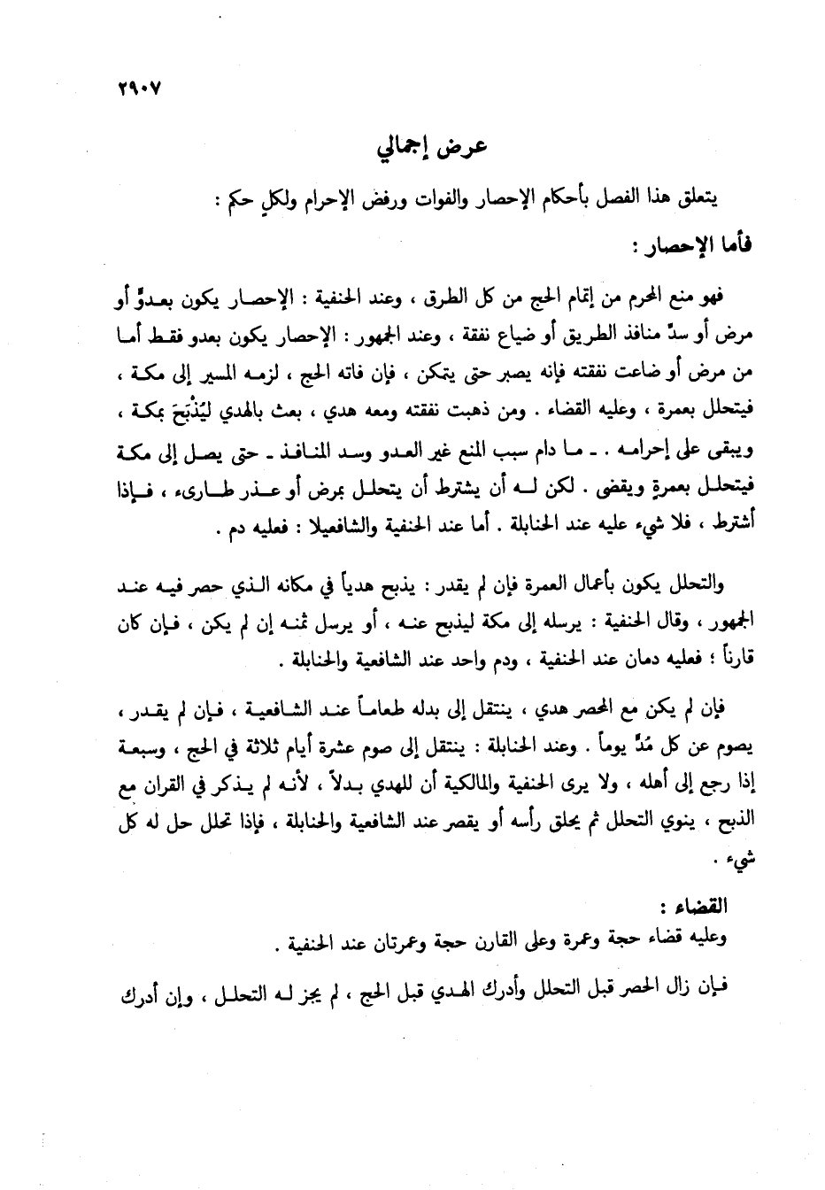 يتعلق هذا الفصل بأحكام الإحصار والفوات ورفض الإحرام ولكل حكم:
